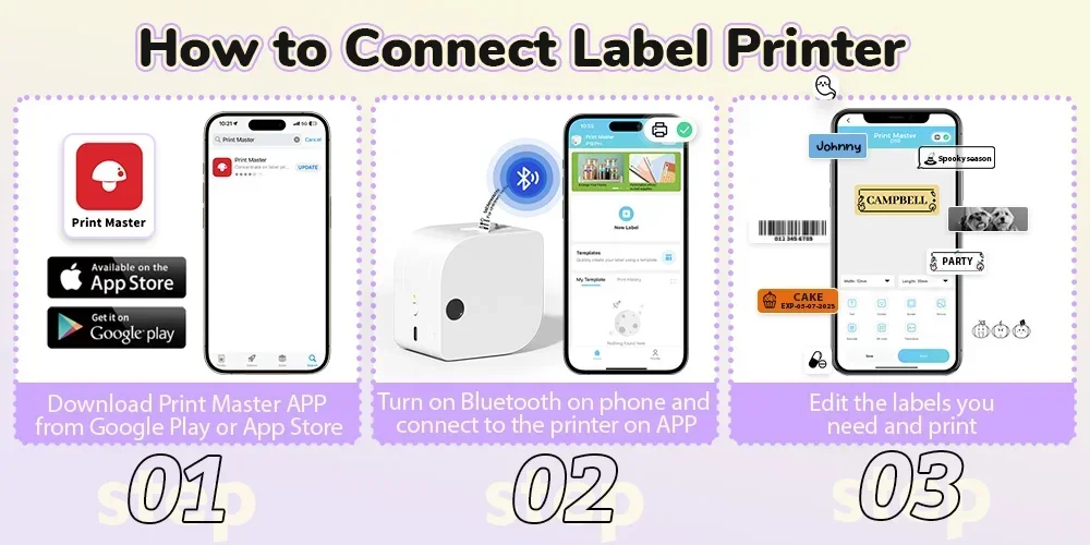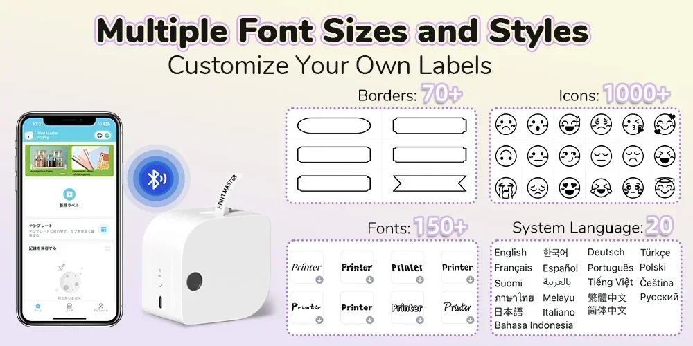 -Technical and Easy Printing: All-in-One "Print Master"App with Bluetooth connectivity, you can easily edit and preview your label designs using your smartphone's keyboard.12 languages to be selected, 1096 symbols, 62 frames and 3 text size options. One-click use: hundreds of icons, there are a lot of pre-made templates in APP, you can easily print any label you need.Say goodbye to manual labeling and streamline your organizational efforts with ease.